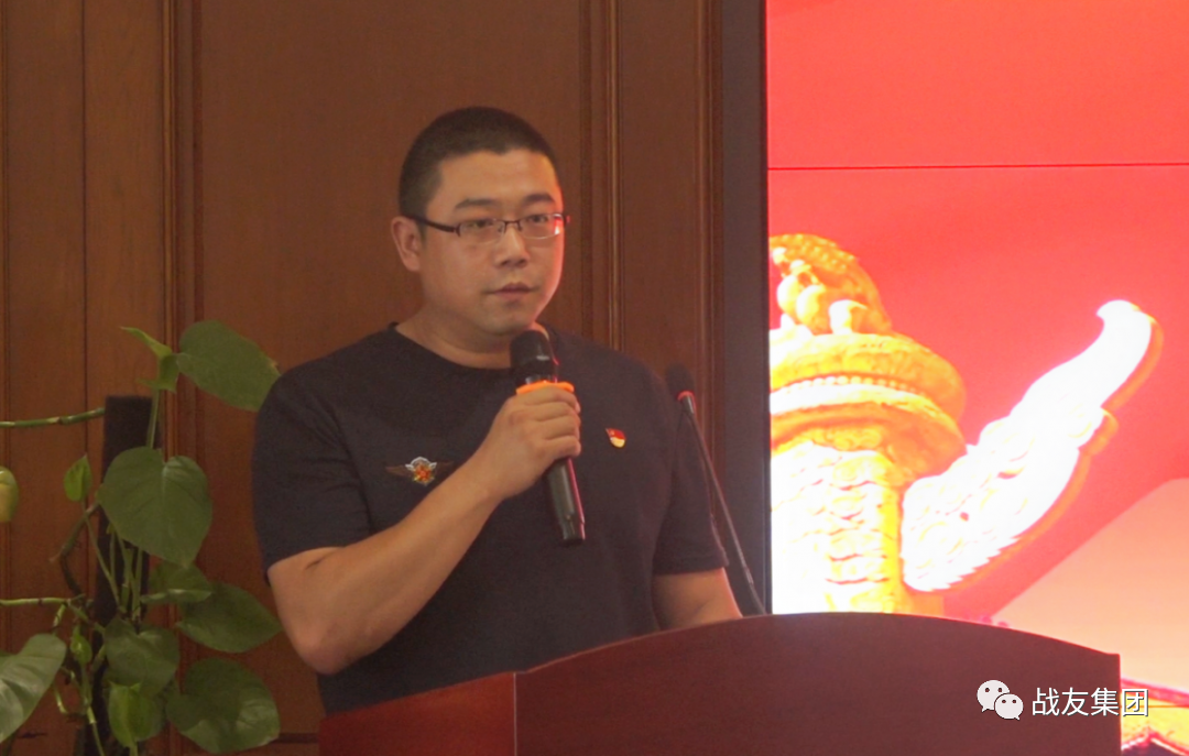 战友集团机关党支部书记王志勇主持主题党日活动,集团党委副书记胡家喜、副总经理李健出席活动。