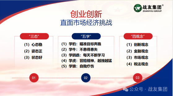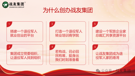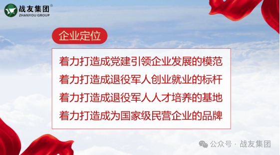 他说,党建文化是企业文化的最高境界。二十一年来,战友集团始终坚持“党建引领促发展,红色产业助就业”,坚持“服务国防、服务社会、服务退役军人”的企业宗旨,坚持“责任高于一切”的企业精神,坚持传承红色基因,确保了企业能够沿着正确的方向,不断开拓创新,稳步向前迈进。“红蓝融合”坚持尊重个性、鼓励创新、共谋发展,实现组织与个人相互信任。坚持“三信”教育,解决企业党建工作中“人”的因素。鼓励员工以主人翁的姿态,争创一流的心态,斗志昂扬的工作状态,在工作中坚持三信教育,增强团队员工的信仰,信心,信誉。使员工人品、工作水平、服务产品始终跟随时代步伐,顺应数字时代发展,推动“红蓝融合”实践不断发展与提高。他认为,作为企业,把党建红色文化做细就是凝聚力,把党建红色文化做实就是生产力,把党建红色文化做强,就是战斗力。