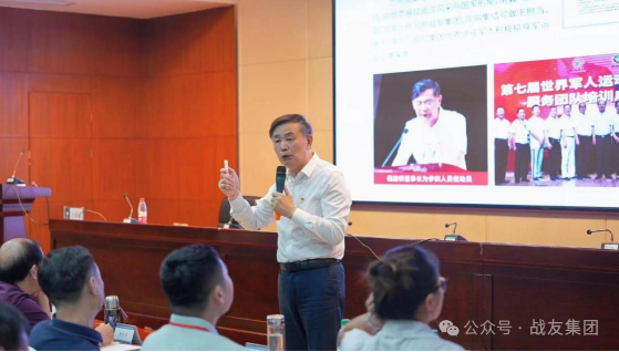 7月24日下午,战友集团党委书记、董事长杨建桥在百忙之中赶赴“2024全省非公有制经济组织党员培训示范班”现场,为全体参训学员作了题为“红蓝融合 守正创新--战友集团红色文化引领企业高质量发展”的主题授课。
