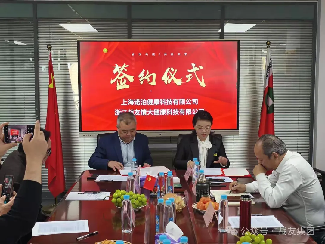 活动中,一个尤为引人注目的环节是浙江战友情大健康科技有限公司与 上海诺泊健康科技有限公司之间的合作协议签署仪式。在全场嘉宾的见证下,吴妙茹女士与吴保林先生庄重地签署了这份意义非凡的合作协议,标志着双方将基于共同的理念与目标,携手并肩,深度整合优势资源,共同推动健康产业的繁荣发展,为人类健康事业贡献更多智意与力量。
